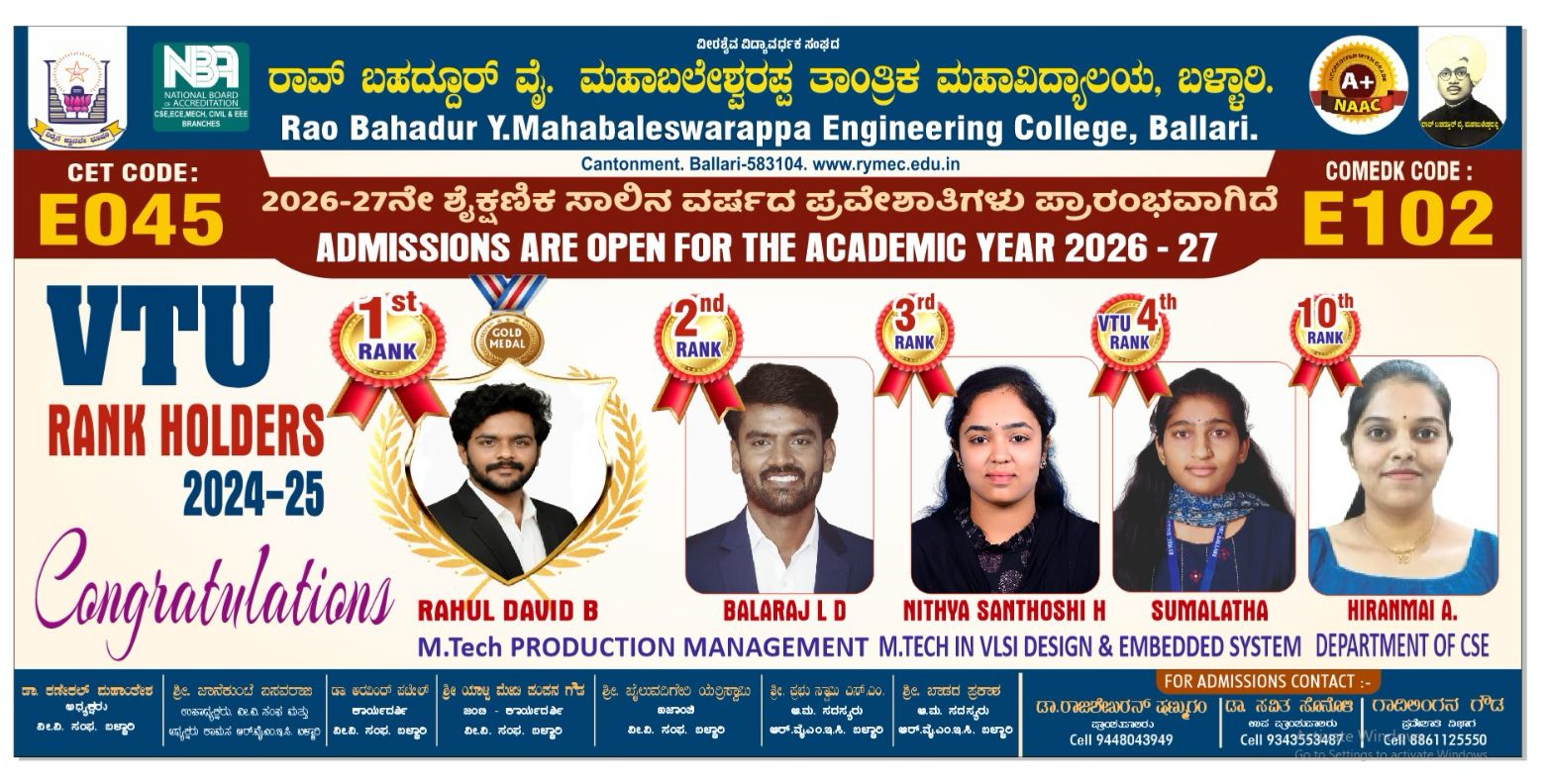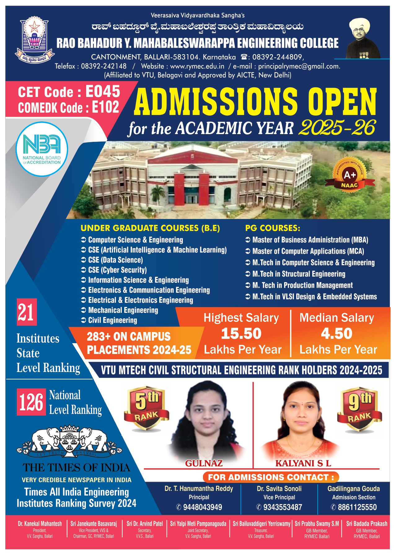 RYM Engineering College is committed to gender equity. Both male and female students are treated equally in all respects.