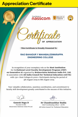 Department of IT BT, Government of Karnataka has started the “New Age Innovation Network” Center at RYMEC in 2019 to build a startup & business ecosystem in and around Ballari.