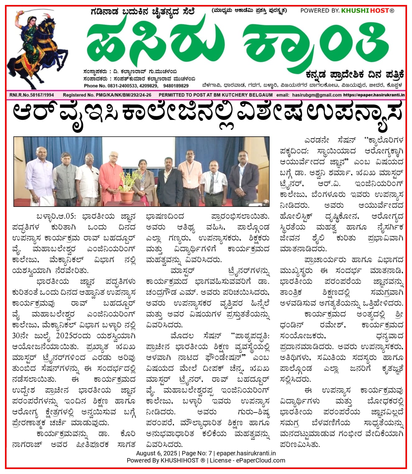 A One Day Invited Talk on Indian Knowledge System (IKS) was organized on 30th July 2025 from 9:30 A.M. to 5:00 P.M. under the category of Knowledge Enhancement. The session was conducted by Dr. Ashwani Sharma, an academician, researcher, and Certified Master Trainer in Indian Knowledge Systems (IKS) under AICTE, Government of India.